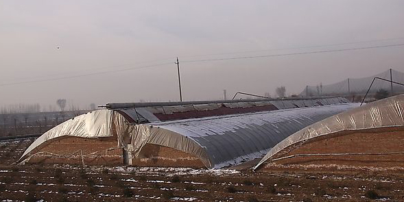 阴阳型日光温室有对称型和非对称型两种结构形式。前者由于温室两个后屋面之间自然地形成了天沟,给屋面排水,尤其是冬季除雪,带来较大困难。此外,较高的阴棚屋脊也影响了后栋温室的采光。为了解决这个问题,有的设计者将日光温室的后屋面取消,直接将采光屋面连接到温室的后墙。这种设计虽然解决了温室屋面排水的问题,但牺牲了温室后屋面对温室的保温,效果也并非理想。以阳棚屋脊高度为起点,以不影响后栋温室采光的阳棚后屋面的角度为基准,设计小跨度阴棚,形成以最大限度利用土地和空间的非对称阴阳型结构是这种温室的理想构型。 阴阳型日光温室在室内的布局也有完全隔离式和相互窜通式两种。 完全隔离式阴阳型日光温室,阳棚和阴棚分别建设各自的门斗或入口(有的设计也采用一个共同的门斗,进入门斗后再分别设独立的入口),室内环境完全隔离。 相互窜通式阴阳型日光温室大多实在进入阳棚后,再在温室后墙上设门进入阴棚,这样可以减少门斗的建设成本,提高阴棚的保温性能。一般阴棚种植果树类品种时,由于进出阴棚的操作量少,多采用这种形式。从阴阳棚环境互补的角度讲,将进入阴棚的通道设在温室后墙,当阳棚内温度较高而阴棚又需要热量时,可将通道打开进行热量交换,同时也能起到降低阳棚温度的作用。最新研究趋势是,不仅利用该通道进行阴阳棚之间的能量交换,而且要在温室墙体上增设通风口,以加强两者之间的物质和能量的交换。 阴阳结合型日光温室中阳棚的用途与传统日光温室相同,而阴棚在冬季则可用于种植不需要光照或对光照要求不高的作物,如食用菌、耐寒蔬菜或进行果树越冬栽培等。越过冬季后,随着室外气温的上身,则可以按照室内温度的变化选择适宜的种植品种进行生产。如种植食用菌,种植期间阴棚的保温被昼夜覆盖,不仅能够保证阴棚食用菌的生产,而且对阳棚的保温性能也有明显的加强,这种种植方式也不需要配置机械卷帘机每天卷放保温被,相应地也降低了温室造价和运行成本。 使用阴棚越冬生产果树,正好利用了果树休眠需要冷积温的生理要求,对温室的保温要求自然降低。如种植葡萄还省去了冬季压埋和春季起埋枝条的劳作,节省了劳动力,同时也有利于保护枝条不受操作过程中的机械损伤。种植果树对阴棚保温被操作的要求视果树休眠需要的冷积温的累计时间和预期开花时间,从夜间不盖保温被→间隔覆盖→全部覆盖保温→。为了减少温室的建设投资,一般可不配置机械卷帘机,采用人工卷被的方式操作。 冬季特别寒冷地区,在最冷的季节阴棚内温度可能无法满足种植作物的要求,这种情况下,阴棚内可以不种任何作物,而将阴棚进行昼夜保温,主要用于加强对阳棚的保温。待室外气温回升后,根据阴棚内温度的变化选择适宜的作物品种进行种植。 这种形式的温室目前在宁夏、青海、内蒙古等地已有部分应用,生产种植果树和食用菌尤其具有良好的经济效益和社会、生态效益。