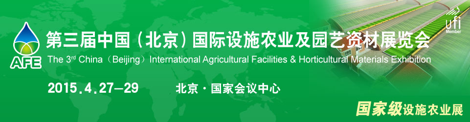 第三届中国(北京)国际设施农业及园艺资材展览会(简称AFE),将于2015年4月27—29日在北京.国家会议中心继续举办。AFE2014吸引了来自全球33个国家400余家企业参展,展出面积达12000平米。是中国首个国家级设施农业展。